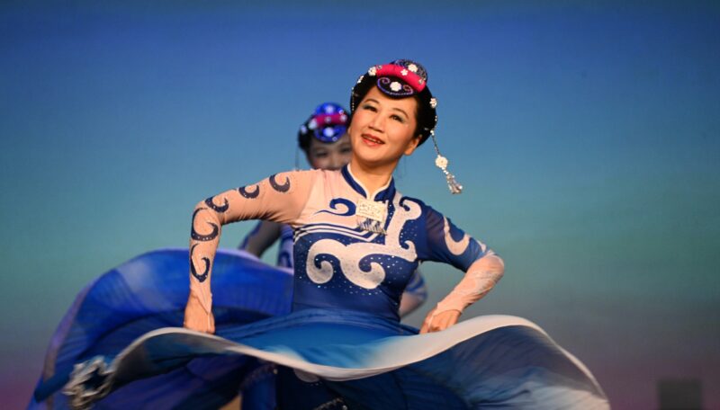 孙科涵的长笛独奏《少女的祈祷》,王彬的女高音独唱《一杯美酒》都精彩连连,符娟领衔高校联盟钻石吧舞队的《云水伊人》《远古的呼唤》舞者以身体为语⾔,在传统音乐节奏中起伏回旋。