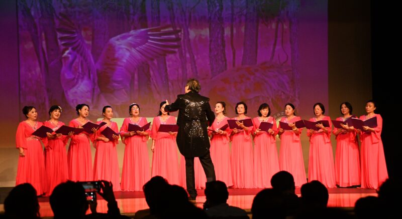 压轴节目是洛城合唱团、天边合唱团的演唱。男⽣⼩合唱、联唱及气势磅礴六十人⼤合唱《弯弯的⽉亮》、《爱永在》,将现场气氛最后推向新高虞度。东谷文体协会创会会长宋诚表示,未来,协会将继续以⽂化为桥梁,以公益为初⼼,举办更多有深度、有温度、有影响⼒的活动。