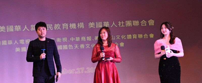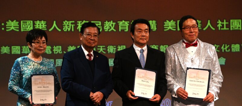 国会议员赵美心代表、前蒙特利公园市市长刘达强(左2)致辞并颁奖