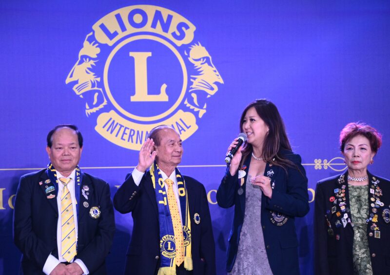 蒙市狮子会新一届会长黄维刚從D4-L2区域总监裴映棋(右)手中接過法槌、