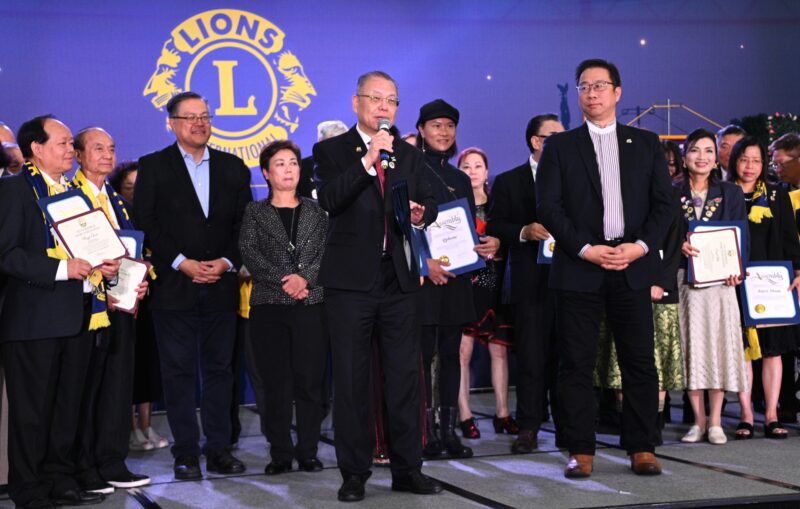 城市新闻12 月 27 日圣盖博报道,蒙市狮子会 (Monterey Park Lions Club) 成立88周年暨职员就职典礼27日于圣盖博希尔顿酒店半岛海鲜酒家隆重举行,前蒙市市长黄维刚担任新一届会长,他将带领团队发扬传统狮子精神,为社会人群服务。加州众议员方树强、圣盖博市议员吴程远、丁言愉、蒙市市长杨安立、副市长罗霈霆;柔似蜜市议员劳朱嘉仪、亚凯迪亚副市长王爱琳、前蒙市市长刘达强、陈赞新、林达坚、饶影凡等与600多嘉宾共襄盛会,任霜霜、叶安利主持大会。