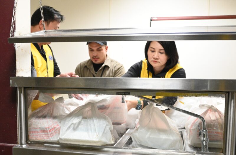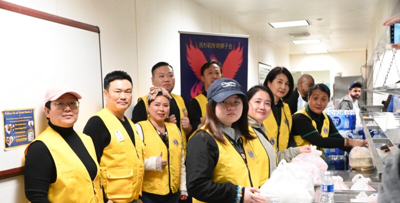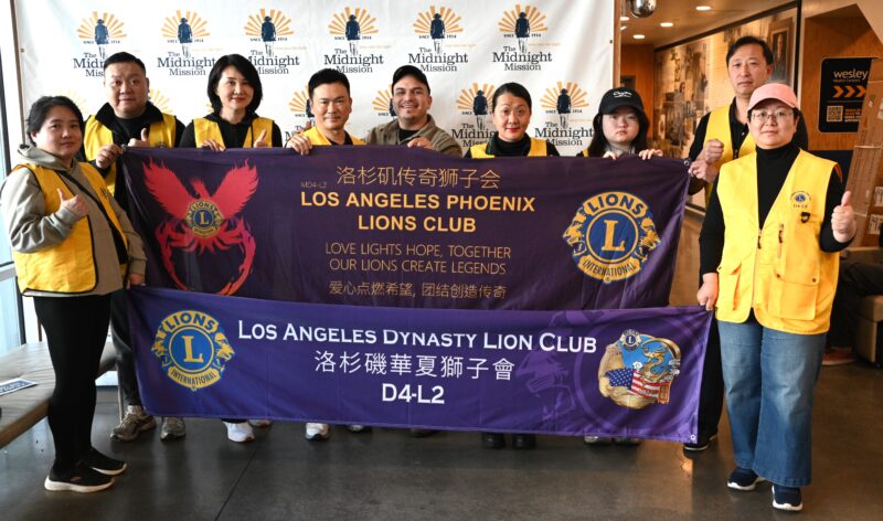 城市新闻12 月 29 日洛杉矶报道,在新年来临之际,洛杉矶传奇狮子会(Los Angeles Phoenix Lions Club)与洛杉矶华夏狮子会(Los Angeles Dynasty Lions Club)携手洛杉矶市中心知名公益机构 Midnight Mission,向无家可归者派发爱心餐,点亮希望与尊严。