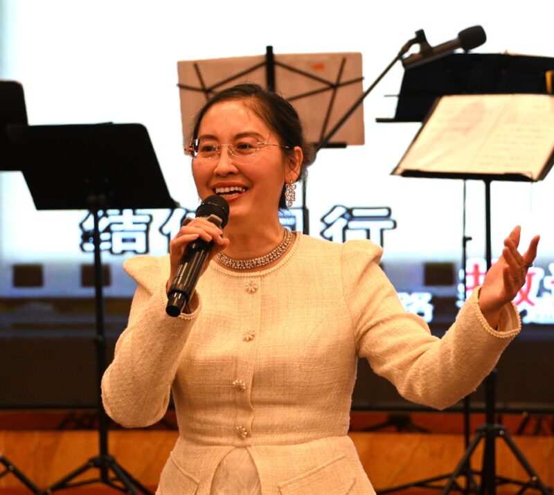 段金平与张五星分别以小提琴与二胡领奏,听竹金弦乐团以口琴、尤克丽丽伴奏并合唱,乐团由张立志、吕君仑、宋创元老师领导,全体与会者齐声跟唱,歌声在会场中久久回荡。
