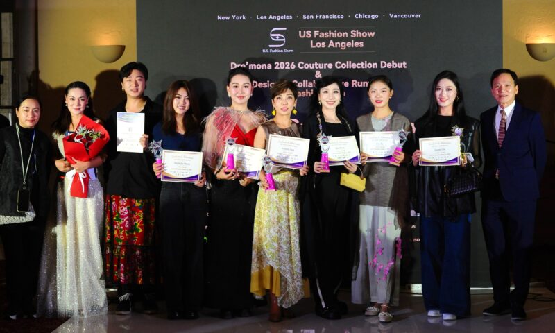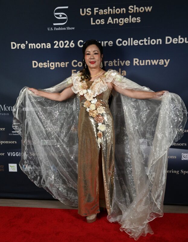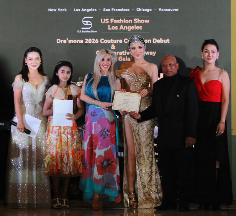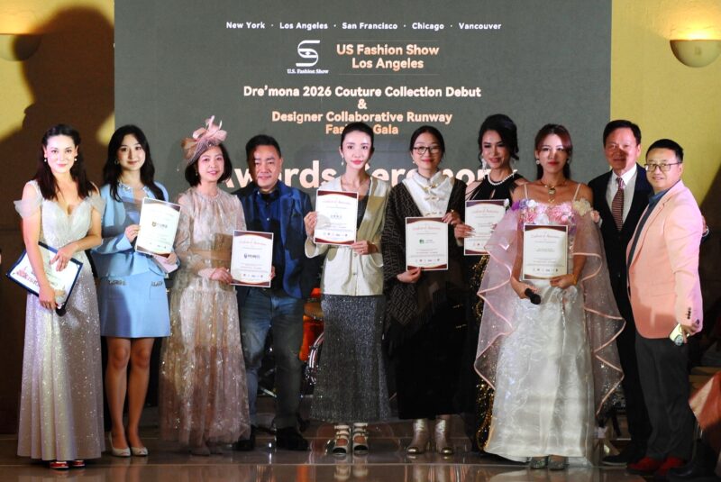 八大品牌齐聚好莱坞,见证“华裔模特”崛起。本届 US Fashion Show,汇集八大国际品牌同台呈现,全面覆盖多个时尚领域。本场大秀共有 150 余位模特同台演绎,尤为亮眼的是——华裔模特占据半壁江山,他们与来自不同族裔的主流模特共同构成舞台核心阵容,以专业实力与稳定的舞台表现力,成为整场大秀的亮点。Dre’Mona Studio高定礼服,Dre’Mona Studio 成人高定礼服系列,由15 位从新丝路赛事中脱颖而出的成人冠军级模特联袂演绎。