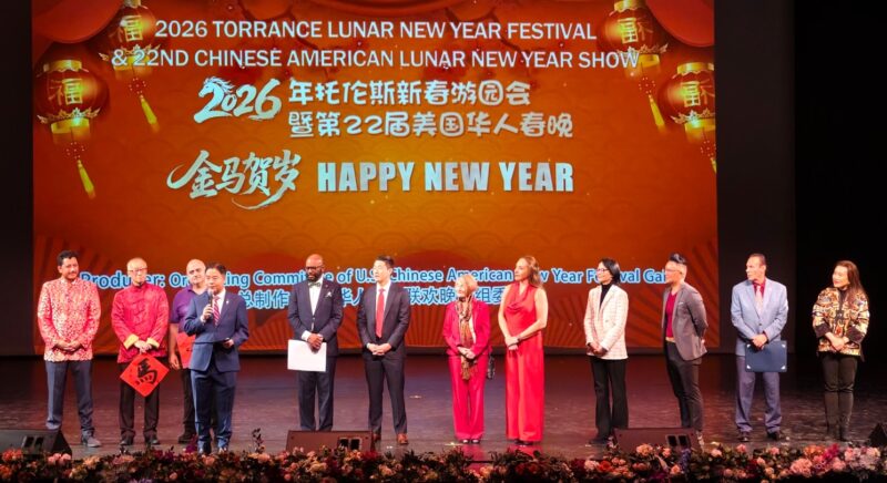 城市新闻1 月 1 1日托伦斯报道,2026年托伦斯新春游园会暨第22届美国华人春节联欢晚会在 Torrance Cultural Arts Center成功举行,中国驻洛杉矶总领馆文化领事陈风华、政新处副主任夏凡、美国国会议员刘云平、加州参议员Bob Archuleta代表、加州众议员Mike Gipson、托伦斯市市长陈光豪(George K. Chen)、Rancho Palos Verdes市市长Paul Seo、Rolling Hills市市长Bea Dieringer、杜瓦提市副市长康佳堔、Pico Rivera市副市长Dr. Monica Sánchez、Hermosa Beach市市议员Dean Francois、Carson市市议员Jim Dear、Cudahy市市议员Martin Fuentes、托伦斯学区教委主席Betty Lieu到场致贺。加州财务长马世云视频祝贺。