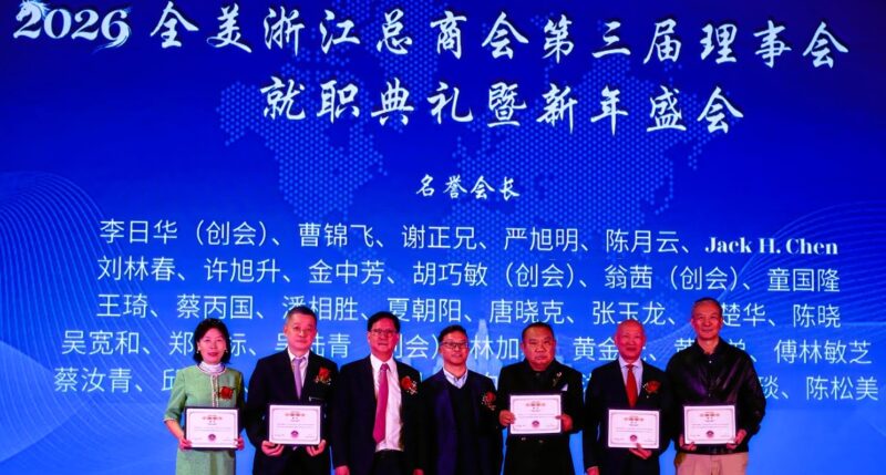 全美浙江总商会第三届理事会就职典礼,不仅是一场组织交接仪式,更是一个链接全球、赋能产业、服务社会的综合性浙商平台正加速成型。在新的历史起点上,全美浙江总商会将继续以开放、创新、务实的姿态,与全球浙商携手同行,为中美交流、全球合作和社会发展作出更大贡献。