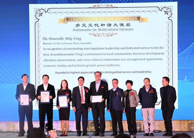 加州众议员陈立德获颁荣誉奖状,邓洪律代表接受