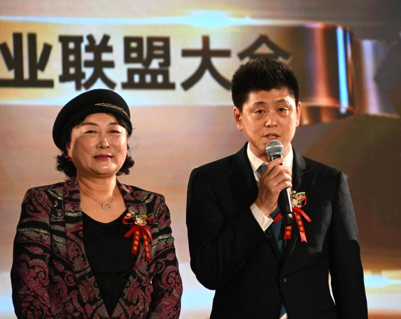 辽宁省侨联兼职副主席黄晓冬(左)致辞、美国华人社团联合会主席张勇(右)