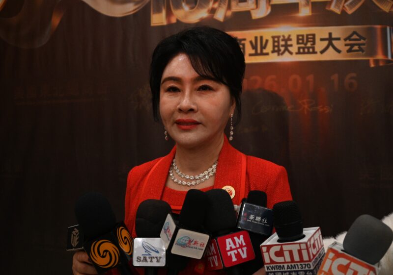 美国东北总商会创会会长路霞接受各大媒体记者访问