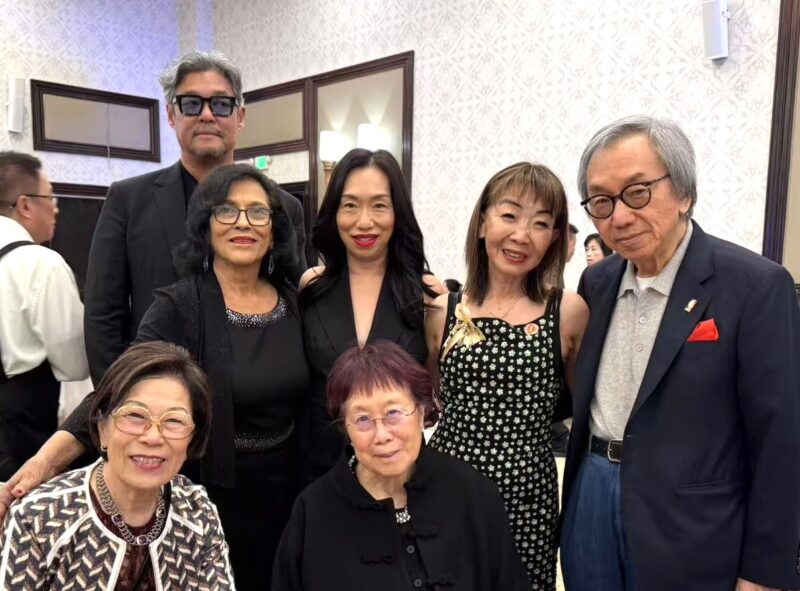 右起:洛城中山联谊会理事长林汉章、美国国会议员赵美心、美国国家科学院院士周敏