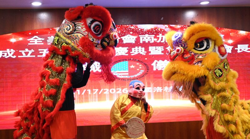 锣鼓声声,醒狮齐舞,全美华人协会南加州分会卸任会长关健荣、郭志强副总领事、何畅源会长、常务副会长颜君玲先后致辞。
