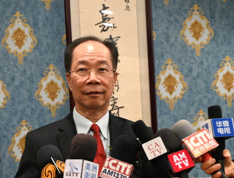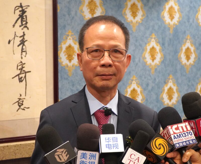 全美华人协会南加州分会会长关健荣接受各大媒体记者访问