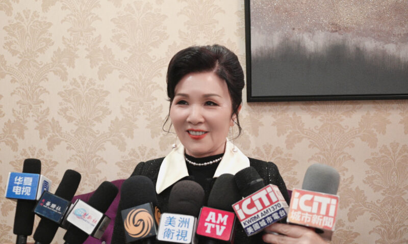 美国福建总商会会长杨丽桢接受各大媒体记者访问
