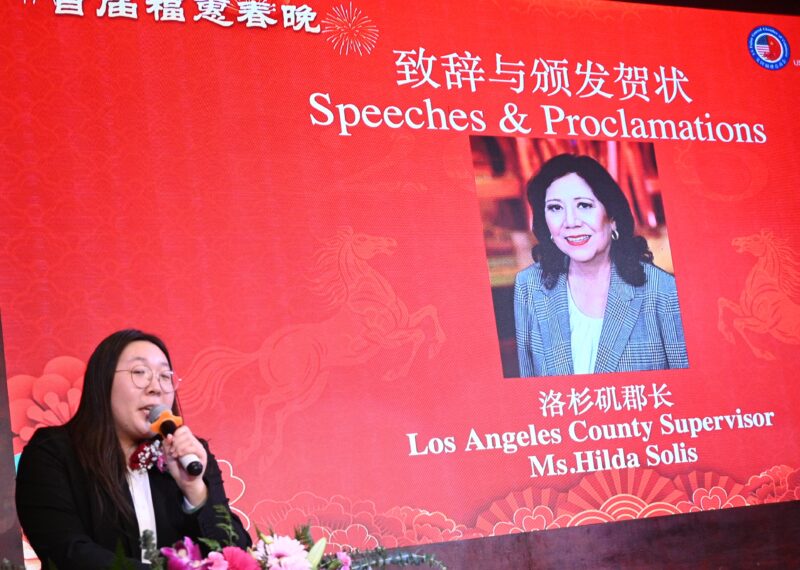 洛杉矶县政委员Hilda Solis代表Joyce Li致辞