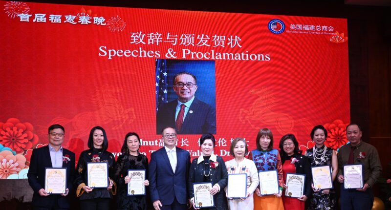城市新闻1 月24日哈仙达岗报道,美国福建总商会2026首届福惠春晚在凯悦华达酒楼热闹登场。福惠春晚节目内容丰富,演出精彩纷呈,展现了商会在过去一年取得的不凡成就以及在新一年团结一致、锐意进取的精神风貌,受到加州众议员方树强等民选官员以及各界代表等200多位与会嘉宾的好评。美国福建总商会副会长何敏秀、Alex张主持春晚。