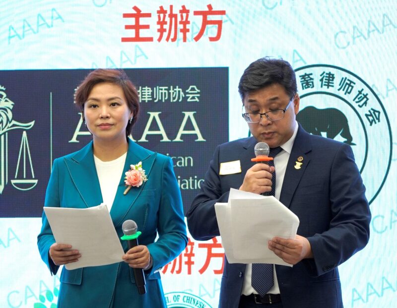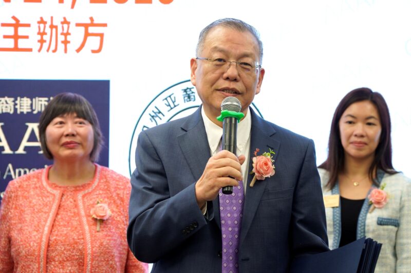 美国加州亚裔律师协会创会会长华强律师在致辞中简要回顾了华裔移民史及华裔律师的发展史。她提到,1890年, 张康仁(Hong Yen Chang)因华裔身份被加州律师协会拒之门外。2014 年, 她带领其他华裔律师联名要求某律师协会推进行业的公平和多元化。2015年,在张律师被拒绝律师资格的125年后,加州最高法院终于追授其执业资格——这是对历史的致敬,更是对未来的承诺。50年前,当一些主流律师协会仍将犹太裔、有色人种和女性律师拒之门外时,一群不愿被命运摆布的律师挺身而出,创立属于自己的协会。从寥寥数人到影响南加,他们一步步提升了本族裔的社会地位与政治声量。
