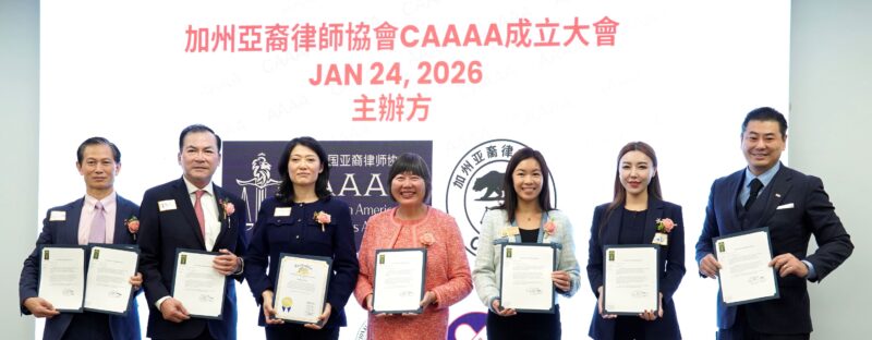 城市新闻1 月 24 日尔湾报导,美国加州亚裔律师协会(California Asian American Attorneys Association, CAAAA)于1月24日在尔湾市隆重举行成立仪式,华裔社区知名律师华强为创会会长。美国国会议员赵美心等民选官员以及南加州律师界、侨界、商界等知名人士齐聚一堂, 百人共同见证了这一历史时刻。刘玮、刘德健(Ken Lau)主持成立仪式。