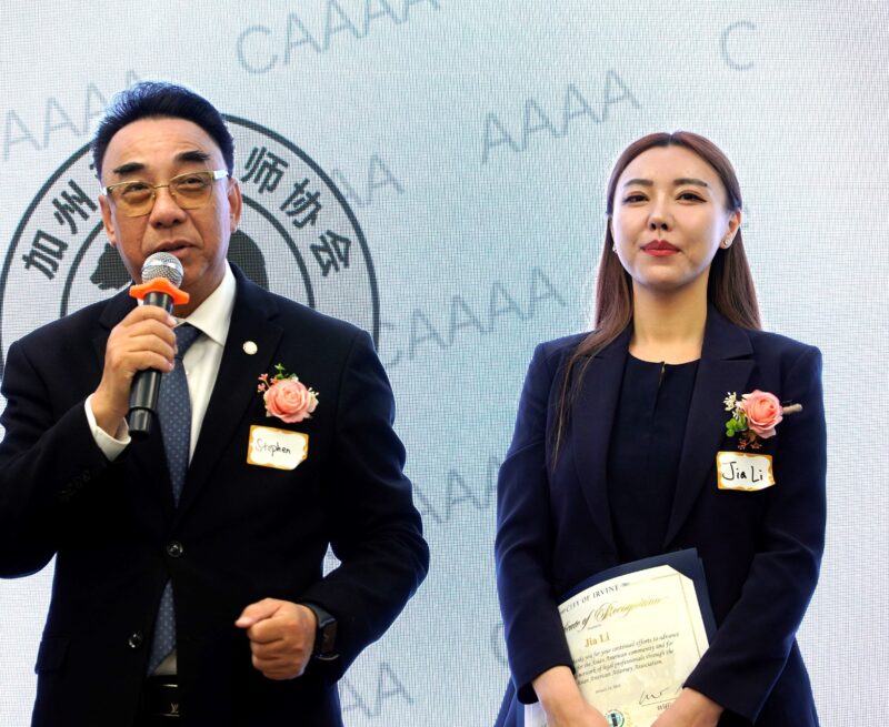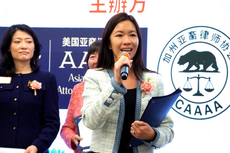 李佳说,作为“ CAAAA-加州亚裔律师协会” 的一名创会会员,今天站在台上感到非常的荣幸,因为她认同这个协会的宗旨,在帮助弱势群体的同时也实现法律同仁间的互助。在来到美国这个完全陌生环境的过程中,她深刻感觉到需要帮助和扶持,她也有幸认识了一些非常优秀的华人律师。华裔族群往往非常努力,但比较内敛和低调,她相信,一个真正有凝聚力和有行动力的组织-像CAAAA这样,可以慢慢改变这一点,华裔律师的优秀和实力会被更广泛的社会群体看见并认可。未来,她希望能够在CAAAA这个组织中贡献自己的一份力量,祝这个组织越办越好、越做越强。