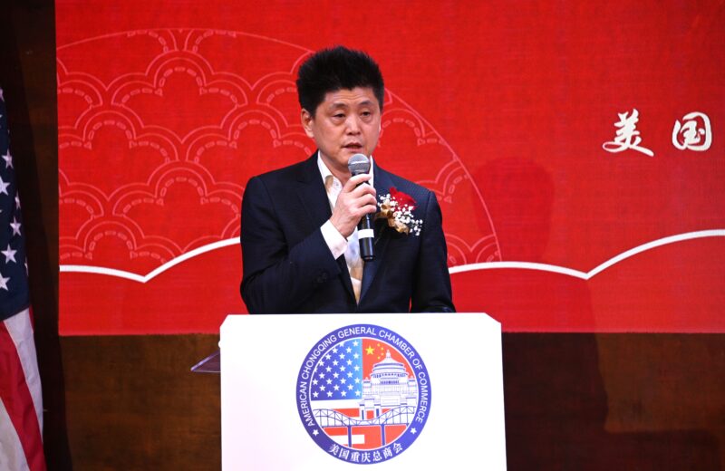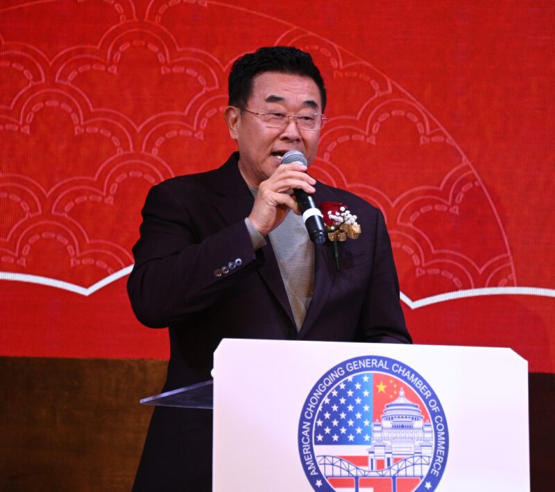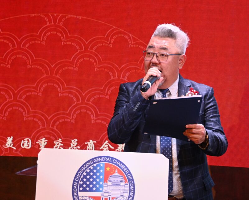 美国重庆总商会秘书长 Stephen Han宣读《重庆市总商会贺信》