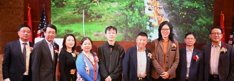 核桃市副市长伍立伦、亚凯迪亚副市长王爱琳、美国加州钻石吧市议员刘栩林、美国南加州华人华侨联合总会会长蔡成华、美国南加州华人社团联合会主席团主席张勇、美国鹰龙传媒董事长、中美电影节主席苏彦韬、美国南加州华人华侨联合总会共同会长、美国江苏总商会会长徐晓峰、美国加州企业家联盟主席陈慧碧、美国华人社团联合会荣誉主席、美中和平友好促进会会长鹿强、美国巾帼会会长方蕾、美国晨桥国际董事长赵晨代表美国飞鹰球队队长保罗、东洛杉矶学院中文及中国文化终身教授、 美西华人学会理事长刘荣文教授、美国南加华人经贸文化协会会长黄冬平、美国飞虎队友好协会会长许绍理等也先后登台致辞,希望在新的一年继续与美国重庆总商会合作,携手并进。