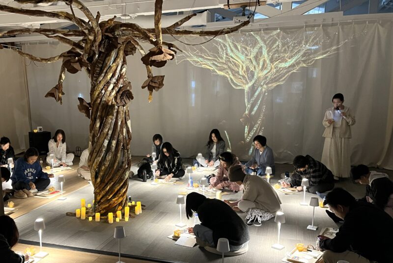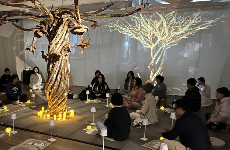 活动现场由沉浸式艺术家 Narae Kim 及其团队打造的大型艺术装置「我们的生命树」格外吸睛。参与者在90分钟的沉浸创作中,将个人的记忆、情绪与当下心流融入装置中,共同让这棵“正在生长的树”不断延展。每位来宾也在独立坐席上完成一件属于自己的艺术作品,并可带走一组可在家中种植的种子,象征觉察在生活中持续发芽、生长。