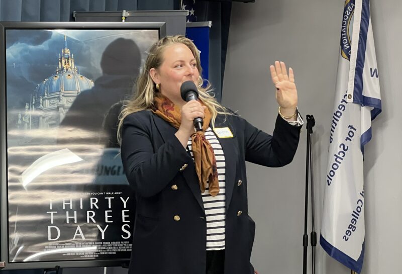 城市新闻1 月25 日圣玛力诺市报导,由喜福会(The Joy Luck Club)主办电影「33天」(33 Days)拍摄分享说明会在圣玛力诺华协俱乐部盛大举行,圣玛力诺市议员周克奇(John Chou)、前市长孙国泰(Richard Sun)偕夫人陈小鸣(Ivy Sun)、圣盖博市议员吴程远、孙国鼎医师、电视制作人卓蕾、好莱坞演员胡玲、女作家丁丽华、大型演出企划尹祧、圣玛力诺华协会长 Henry 张、特别嘉宾Wendy Wong、橙县华人协会前会长胡安滢等政要名流六十多人出席。