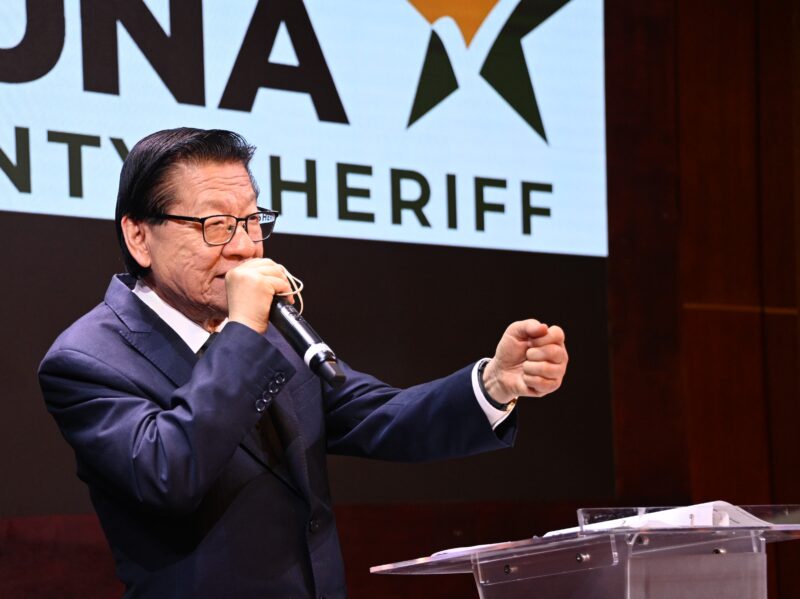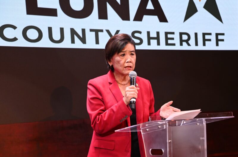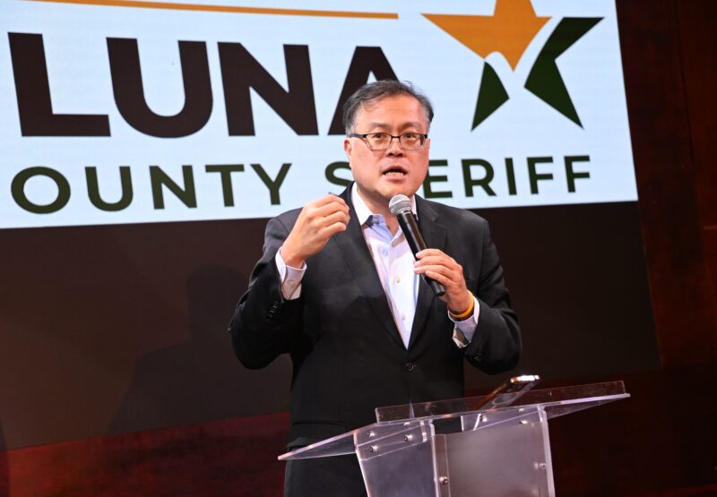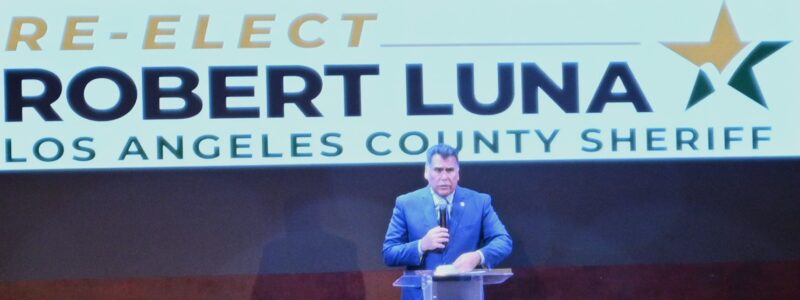 洛杉矶县警局局长Robert Luna竞选连任发表演讲