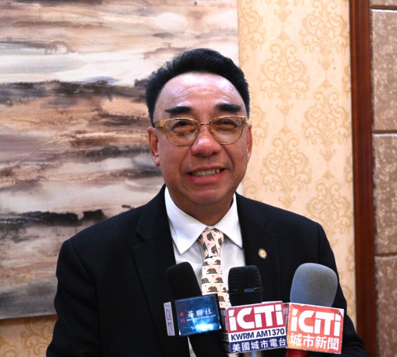 筹款晚会主席、蒙特利公园市前市长、美国粤港澳大湾区企业家总商会创会会长林达坚接受各大媒體記者訪問