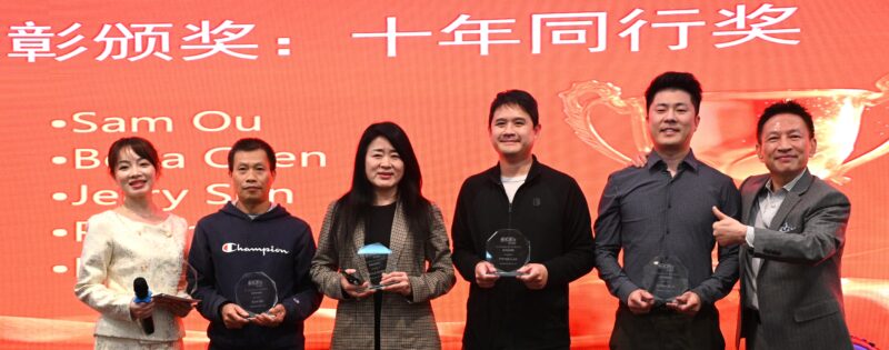 邓澍宏董事长(右1)颁发“十年同行奖”