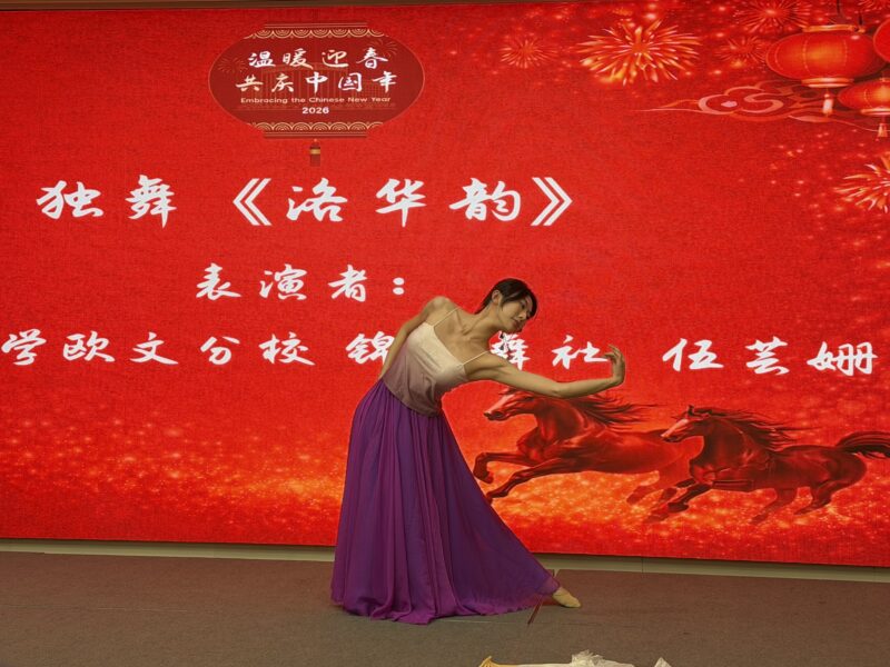 招待会现场还安排了充满新春特色的中国民族舞蹈和歌唱等精彩文艺表演,现场气氛欢快,宾主尽欢。
