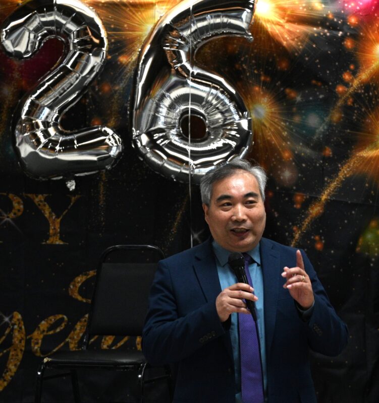 前加州众议员伍国庆(右)致辞
