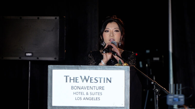 洛杉矶中华总商会副会长兼选美大赛主席吴雅婷(Christina Wu)致词