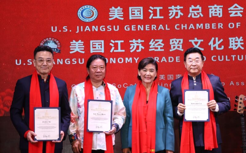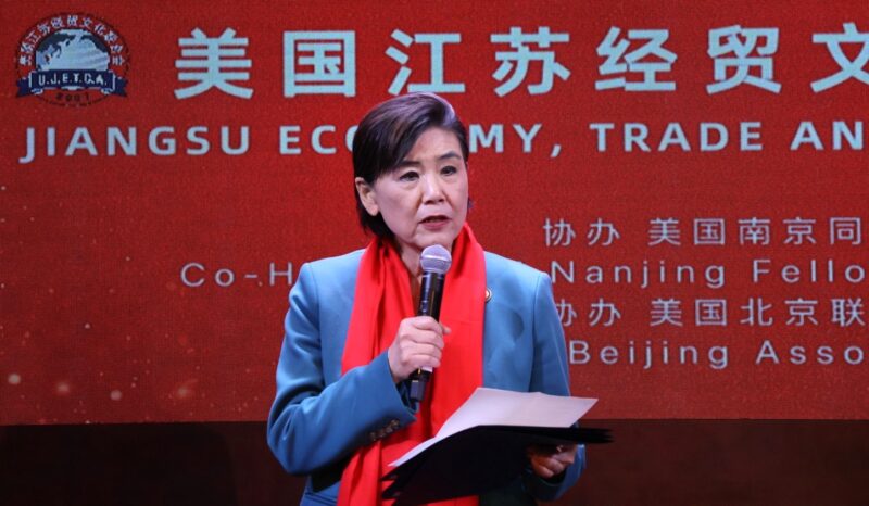 当晚从首都华盛顿抵达洛杉矶的美国国会议员赵美心不顾旅途疲劳,从机场赶到晚会现场。她说,虽然只有短短10年,但江苏会已经建立了一个全国性的网络, 并拥有几十家领先且知名的成员企业,为来自江苏省和全美各地的企业会员搭建了一座桥梁,不仅促进了投资, 而且真正帮助了投资者。江苏会在美国的法律、税务和商业环境中游刃有余,促进了美国与江苏之间的经济联系。除此之外,江苏会在许多重要活动中发挥了领导作用, 包括举办纪念中美乒乓外交活动。她感谢江苏会为美国的企业赋能,感谢江苏会所做的所有杰出工作,祝贺江苏会度过了精彩的一年。