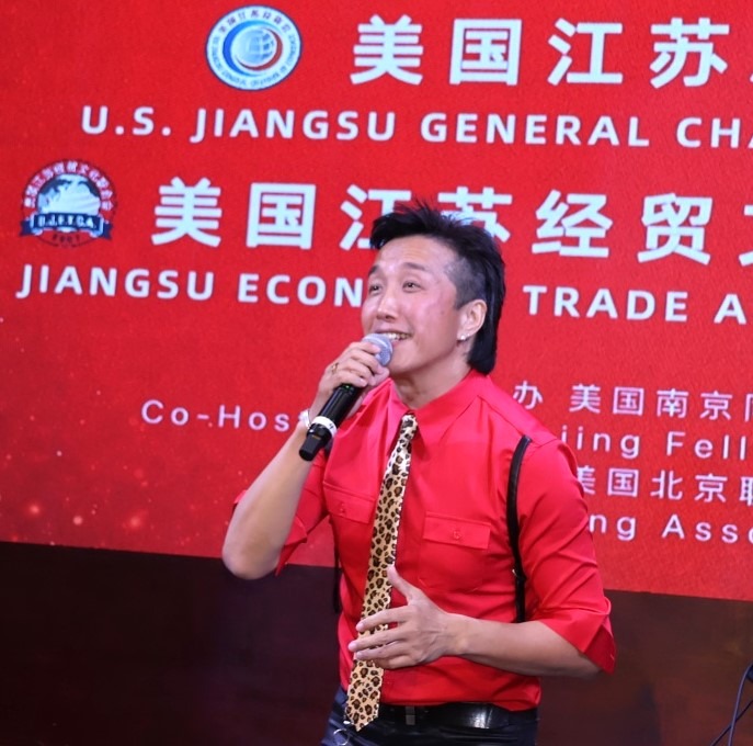 美国江苏总商会、江苏经贸文化联合会监事长梁宏医师主持晚会