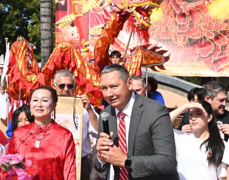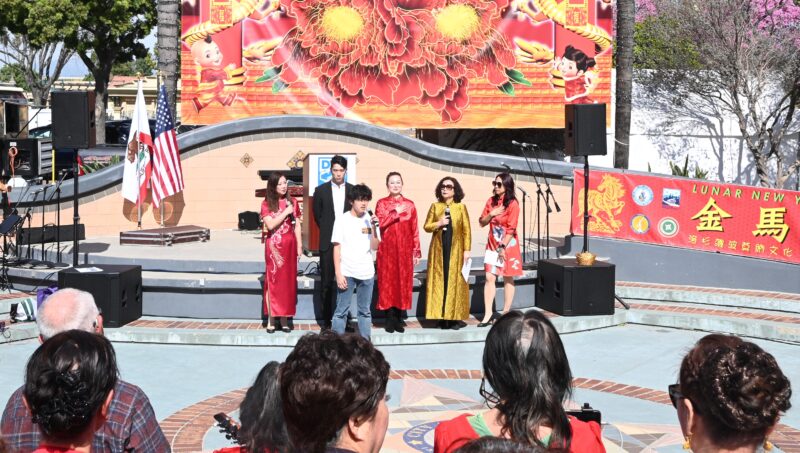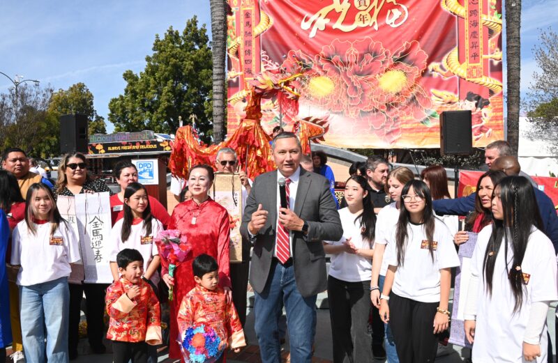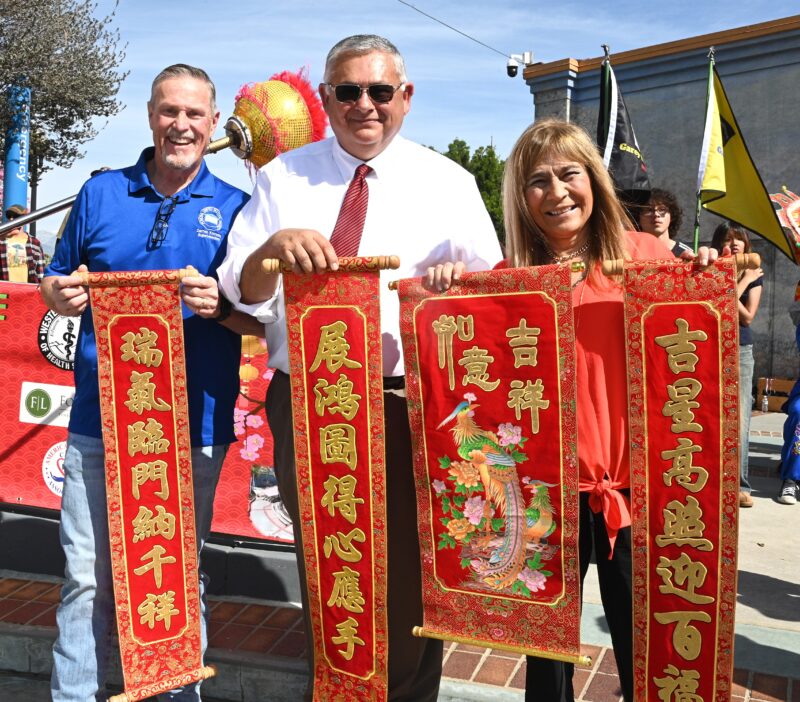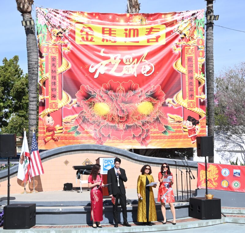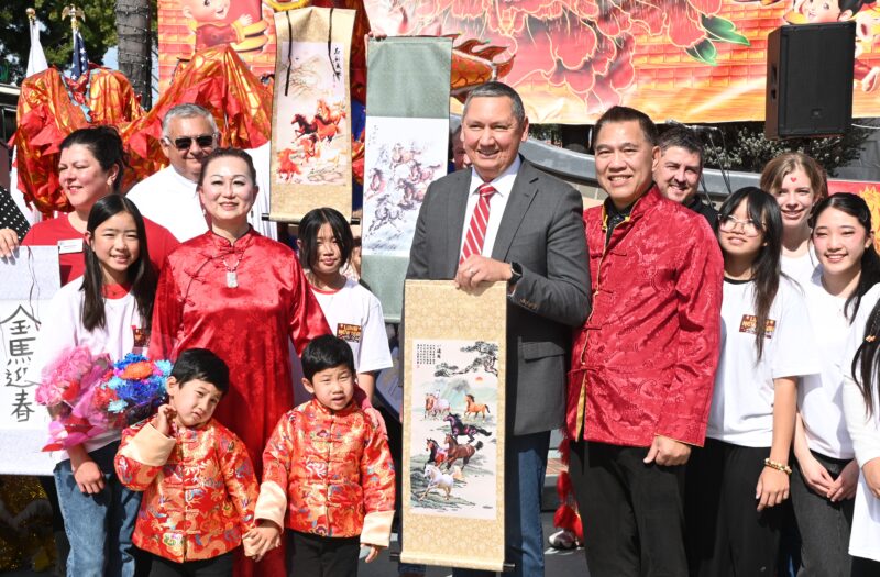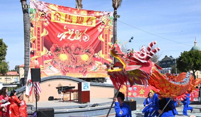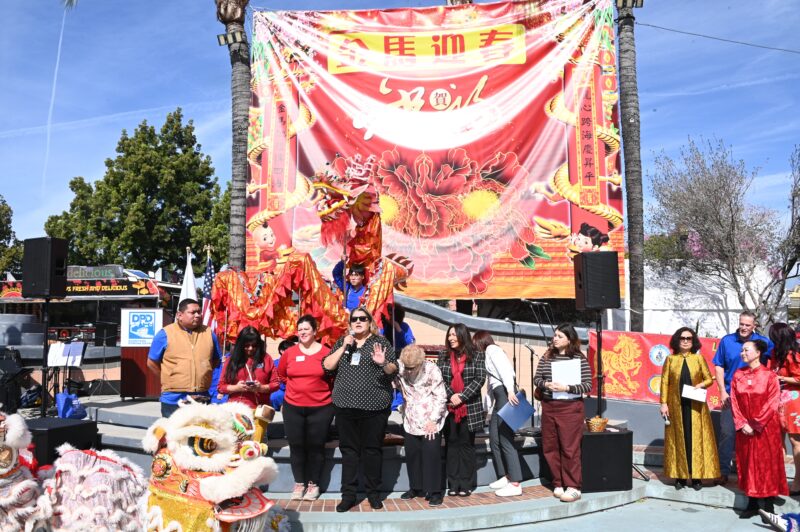 城市新闻2 月14日波莫那报道,「策马奔腾迎2026、多元文化金马迎春庆典」在波莫那市中心热闹登场,锣鼓声声,狮龙齐舞,美国国会议员 Norma Torres代表、加州参议员 Susan Rubio、加州众议员 Michelle Rodriguez代表、洛杉矶县估值官Jeffrey Prang、波莫纳市长 Tim Sandoval、市议员 Debra Martin、Victor Preciado、Nora Garcia、Elizabeth Ontiveros-Cole、Lorriane Canales、波莫纳市中心区董事 Heidi Ortega 及其他董事会成员等政要名流纷纷出席庆典致新年贺词,并向庆典筹备会主席王清伟(Eddie)、执行主席莫洁仪(Linda Mok)颁发证书,感谢他们连续七年举办中国新年庆典,为社区交流与和谐作出积极奉献。