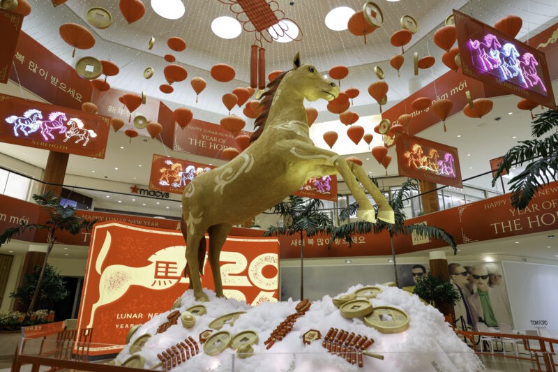位于科斯塔梅萨的南海岸广场 South Coast Plaza 于2月12日正式迎来农历马年,在珠宝苑隆重举行新春主题装置揭幕仪式,以传统舞狮、剪彩及机械动态雕塑展演,拉开为期近三周的节庆序幕。