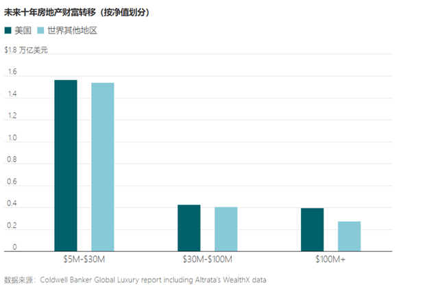 根据 Coldwell Banker Global Luxury 最新报告,全球将有约 120 万名身家 500 万美元以上的高净值人士,在未来十年向下一代传承超过 38 万亿美元的财富。而其中,约 4.6 万亿美元将以房地产的形式完成交接,仅美国就占了将近 2.4 万亿美元。