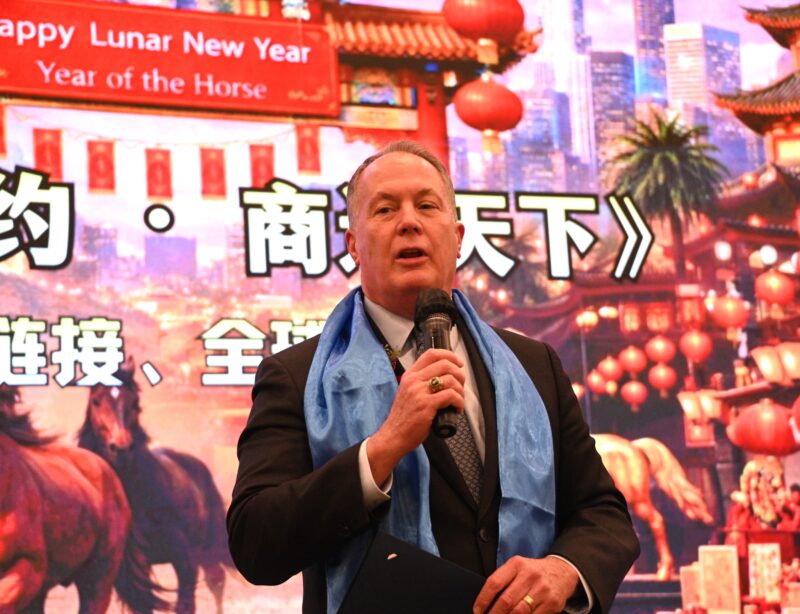 美国国会议员赵美心致辞,并向与会嘉宾送上马年祝福。她表示,特别感谢美国内蒙古总商会会长及团队的辛勤付出,并见证商会不断成长壮大,同时积极传播内蒙古的文化与传统。她赞扬总商会积极推动内蒙古与加州之间的经贸往来,帮助企业家来美投资发展,也协助美国投资者走进内蒙古,加强双边合作。