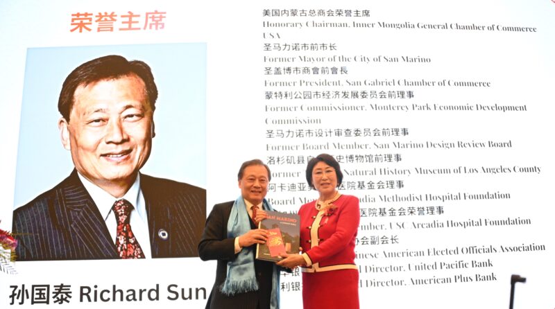 左起:圣马利诺市前市长孙国泰、美国内蒙古总商会常务执行会长于丽娜