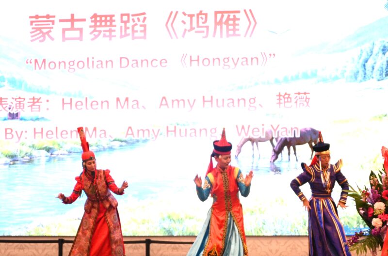 美国内蒙古总商会年会文艺节目多姿多彩,杨紫萍、Louis、大白联袂演唱歌曲《为内蒙古喝彩》由;王嘉歧独唱《祝酒歌》;HelenMa、Amy Huang、艳薇表演蒙古舞蹈《鸿雁》。脑门额尔德尼表演蒙古国著名摇滚乐《The Hu》及中国民族摇滚《杭盖》。朱俊英、Lucy、Andy带来萨克斯串烧《老朋友再见》《同一首歌》;于月华表演独舞《吉祥四季》。Peter Jin演唱《鸿雁》,艾丽带来《莫尼山》,王盛誉演唱《天堂》,潘松林献唱《等待》,王嘉歧再度演绎《西班牙女郎》。蒙古民族服装舞台走秀,展示独特民族文化魅力,场内一片欢声笑语,喜乐融融。