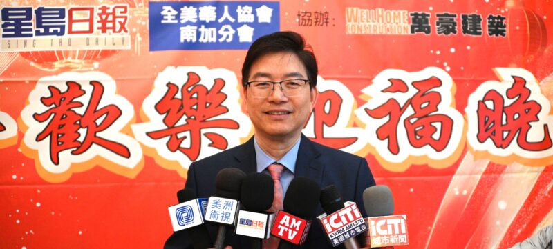 全美华人协会南加分会荣誉会长关健荣接受各大媒体记者访问