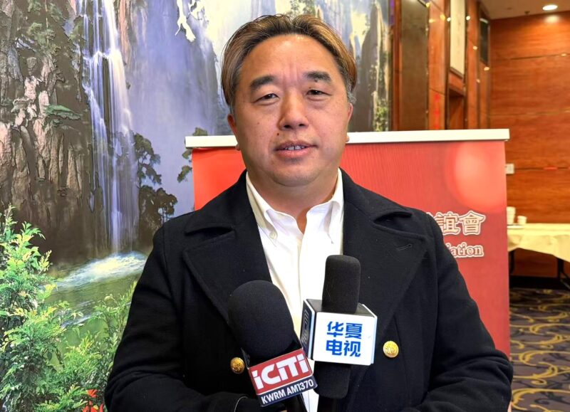 南加州湖南同乡联谊会监事长吴旺军接受各大媒體記者訪問