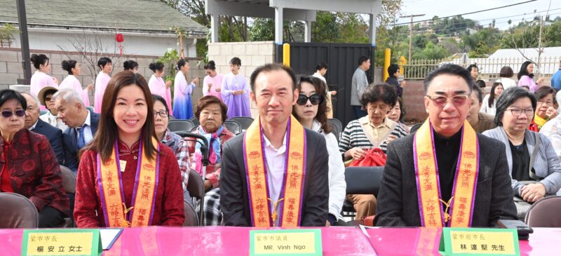 蒙特利公园市市长杨安立、副市长吴绍荣、前市长林达坚与一百多信众参加