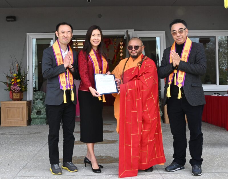 城市新闻2 月16日柔似蜜报导,法灵寺举行新年百八音护法暨启用法会,蒙特利公园市市长杨安立、副市长吴绍荣、前市长林达坚与一百多信众参加,法灵寺大和尚悟光法师带领信众祈祷、开见法师主持法会。