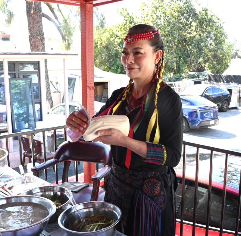 聚餐的美食都是由福蒲仙同乡会和福建总商会理事长张文提供,桌上摆满了龙虾、螃蟹及多款福建特色美食,丰盛而地道,满足了大家的味蕾。Crab Grab 手抓海鲜店老板芬芳现场制作秘制刀削面,香气四溢,吸引了众多嘉宾驻足品尝,为晚会增添了别具一格的美食亮点,也让大家在欢聚的同时感受到浓浓的新年味道。