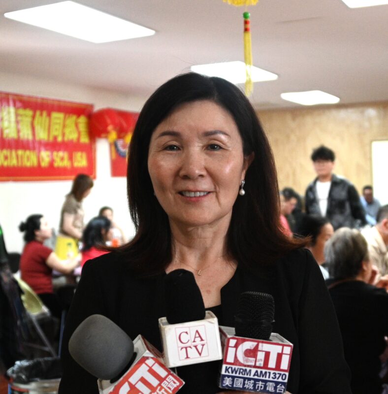美国福建总商会会长杨丽桢接受各大媒体记者访问