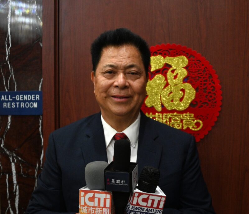 美国南加州广东恩平同乡会会长冯炎成接受各大媒體記者訪問