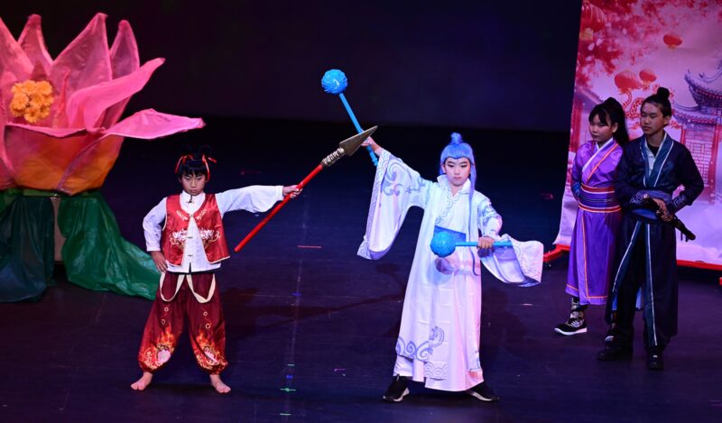 中文学校的孩子们成为了当晚最受欢迎的闪亮之星。Pre-K班的《新年好》、一年级的《我的朋友在哪里?》以及双语班的《月亮圆来团圆》,孩子们稚嫩的歌声与萌心十足的舞步赢得了全场热烈的掌声。随后由中文学习学生演出的舞台剧《哪咤》,则通过魔童转世的故事,探讨了善恶抉择与打破命运枷锁的深刻主题,展现了华裔青少年的表演天赋和中文学校老师们的精心指导。