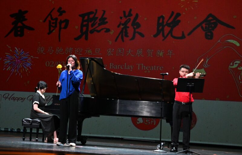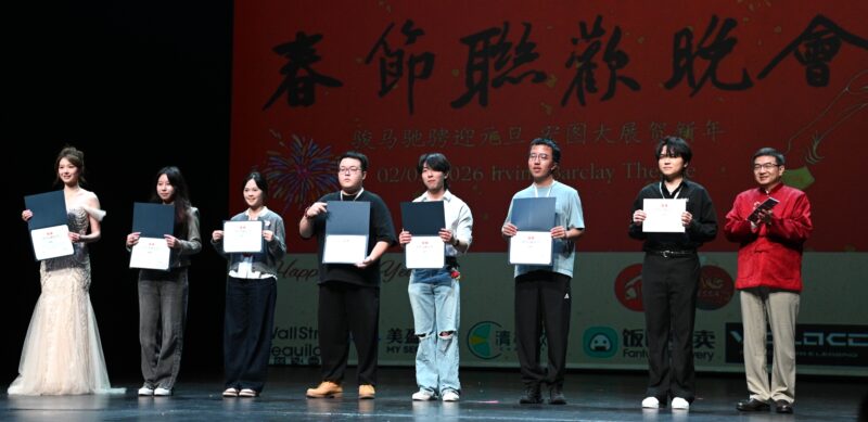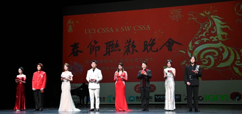小提琴与钢琴合奏《梁祝》由张嘉洋、梁语桐联袂呈现,悠扬旋律诉说千古爱情。UCI 最大的华人音乐社团“夜色温柔”带来流行合唱《爱意流转 声入云端》,以林俊杰歌曲串烧串联记忆与情感,现场大合唱气氛热烈。