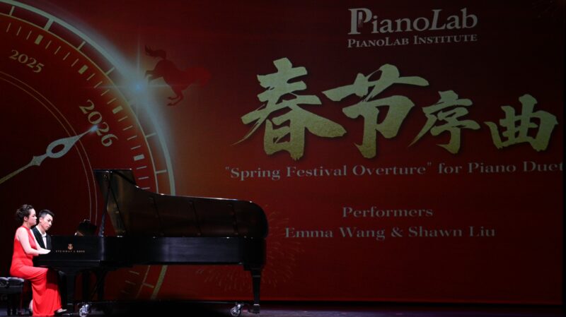 本届春晚由张乐然、黄紫薏担任总导演,李安妮担任总监制,整体分为“迎春”“探春”“惜春”三个篇章,层层铺陈、情感递进。晚会在钢琴四手联弹《春节序曲》中拉开序幕。熟悉的旋律,瞬间唤起浓浓年味,热烈的节奏象征着团圆与希望。随后,声乐作品《我的美丽》与《Tears of Gold》以独唱结合钢琴、小提琴与生活音效采样的形式呈现,展现了当代青年对自我与世界的思考。